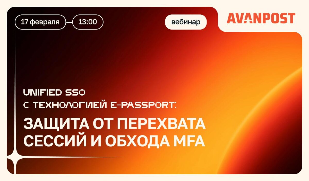 ▶️ Вебинар: Unified SSO c технологией E-Passport: защита от перехвата сессий и обхода MFA