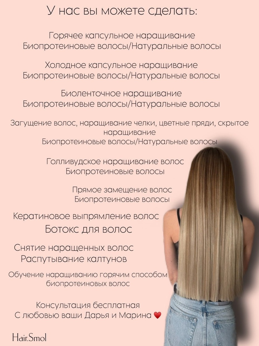 ? ✨ Прическа — это твоя самая главная деталь образа. Она говорит о тебе громче любых слов. 💇♀️ Студия «Hair Smol» — место, где рождается твоя уверенность. Наращивание длинных волос, которые идеально ложатся в твой ритм жизни Так же делаем кератин/ ботокс Уютная атмосфера, где тебя точно поймут Мы не просто делаем красиво. Мы создаем твою индивидуальность. Запишись на консультацию или первое посещение! 📍 Адрес: Беляева 5 📲 Запись в ЛС: vk.ru/hairsmolensk67 📞 Или по телефону: +79525339571 Наша группа: vk.com/hair.smol — здесь больше наших работ и идей! #HairSmol #ПарикмахерскаяСмоленск #СтильСмоленск #НаращиваниеСмоленск Информация о рекламе Рекламодатель Соловьева Дарья Артуровна ИНН 670000341918 Токен 2VtzqvtXw6a