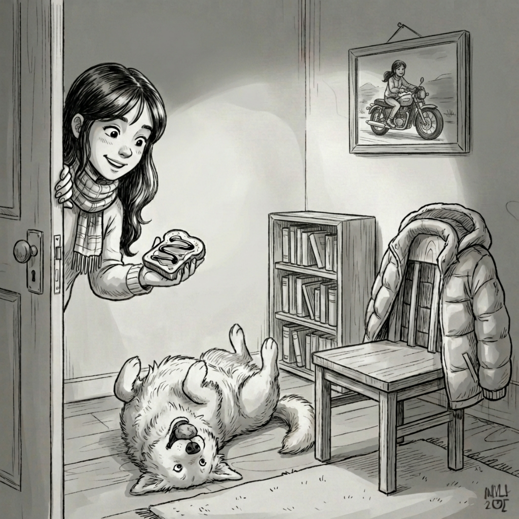 Пришить вешалку на куртке — всё руки не доходят. Бросила на стул. Метеорит выскочил из кармана и покатился по полу. Пуф отвлёкся от наскакивания на меня, схватил камень и потащил в свою конуру под стол. Улёгся, прижал добычу лапами и принялся увлечённо её облизывать. И всё бы ничего. Я уже и разулась, и руки помыла, и чайник поставила. Накапала мёда на хлебушек, как бабушка делала. Лучше любой шоколадки. Но сейчас не об этом. От Пуфа ни слуху ни духу. Мне стало любопытно — чем он там занят? Заглянула в свою комнату. Здрасьте, приехали... Лежит мой красавчик на спине. Камень в пасти держит. Задние лапки раздвинул и только глазками из стороны в сторону зыркает. Как будто понравиться кому хочет. Подлиза. Я сразу представила себе Цербера, которому Психея лепёшку принесла. Для кого это ты разлёгся? Даже на хлебушек не смотришь. Неужто космический булыжник так тебя приворожил? Я, лучший друг Макса, кличка Пафнутий, давно подозревал, что дело тут нечисто. Сначала что-то горячее в снегу, затем