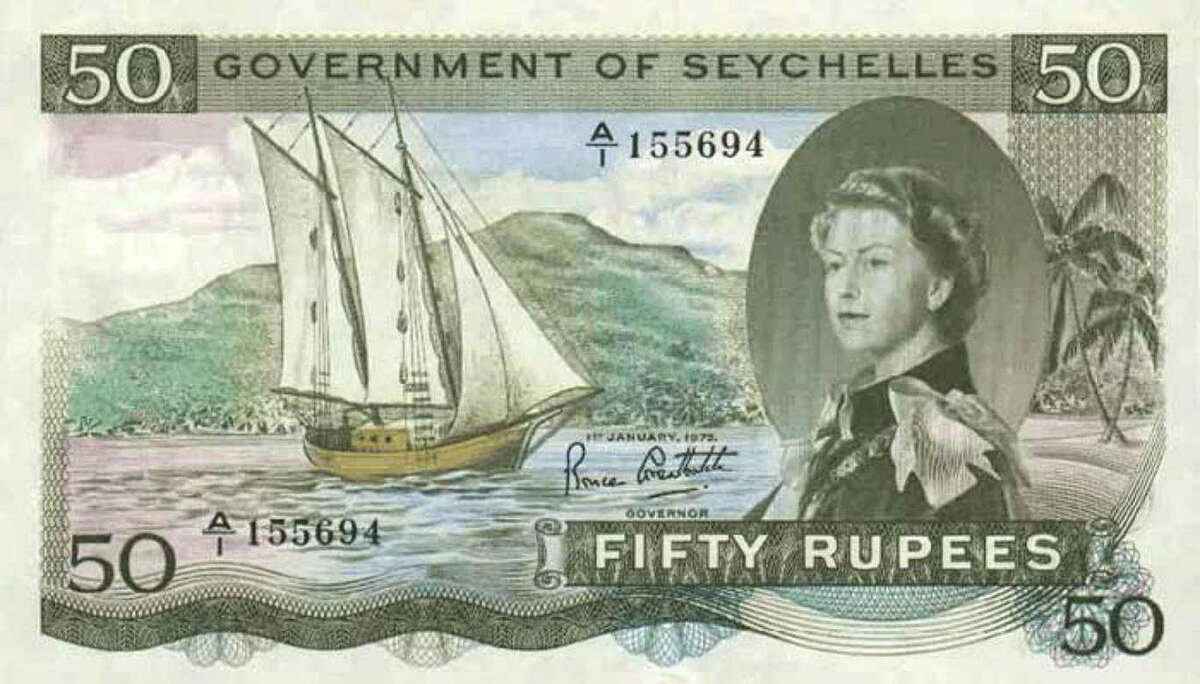 Банкнота номиналом 50 рупий, выпущенная Сейшельскими островами, является частью серии денежных знаков, посвящённых различным аспектам местной флоры, фауны и культурного наследия. Особенностью этой банкноты является наличие портрета королевы Елизаветы II, что подчёркивает исторические связи Сейшел с Британским Содружеством.