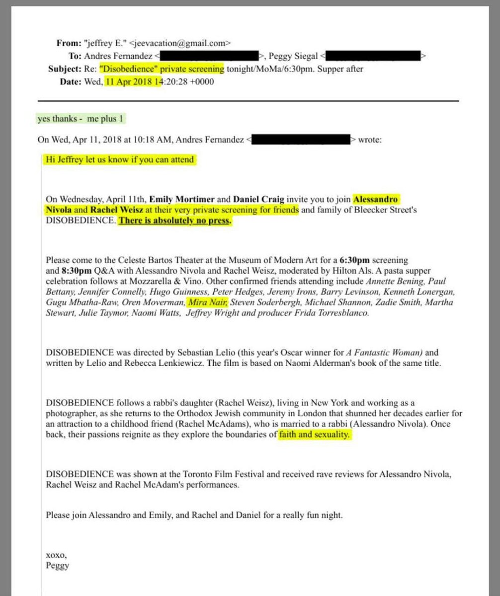 Mira Nair, filmmaker and mother of NYC Mayor Zohran Mamdani, was invited to a private screening and dinner with Jeffrey Epstein in 2018, according to the Epstein files