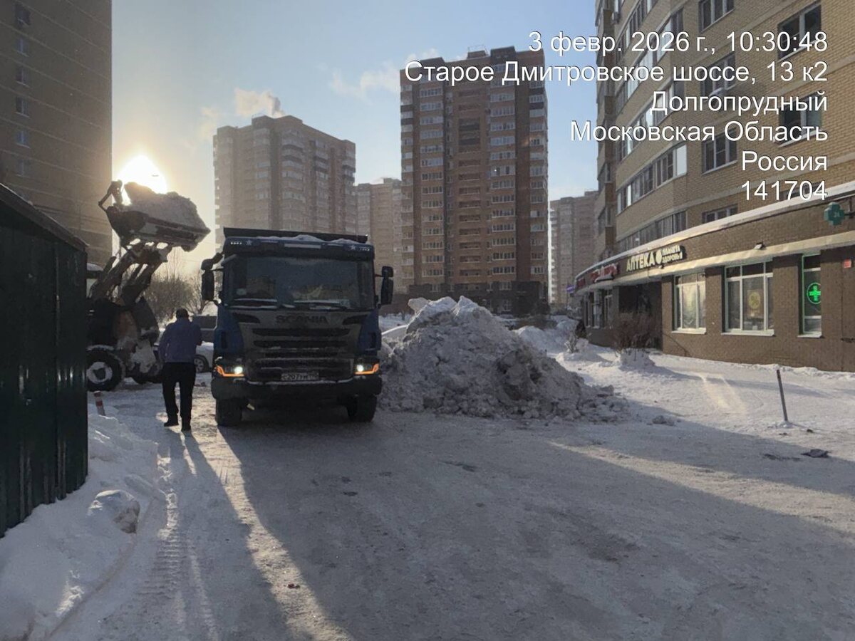 С центральных дорог Долгопрудного за ночь вывезли 27 КАМАЗов снега