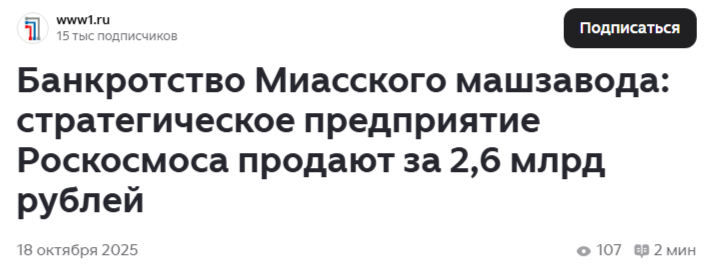 В последнее время в России наметилась тенденция к серьезным сокращениям деятельности, а в ряде случаев - и к полной остановке производственных предприятий. И прежде всего это касается машиностроительных заводов, тех самых, которые и должны были обеспечить то самое импортозамещение, судя по многочисленным заявлениям, сделанным в 2022-2023 годах. И даже работающих на ОПК, хотя, казалось бы... И несмотря на огромные миллиарды бюджетных средств, вброшенных в эти предприятия за последние годы через госзаказы и госинвестиции, которые лишь разогнали инфляцию и не привели к какому-либо "развитию отечественного производства". Я уже не раз приводил подобные примеры, и вот вам еще два ярких. Первый пример - Миасский машиностроительный завод, отнесенный к стратегическим предприятиям и работавший на Роскосмос, в том числе и по военным заказам - производил ракетные комплексы. Завод давно был погрязшим в долгах и убытках, а в 2023-2024 годах полностью прекратил свою деятельность, против него открыто