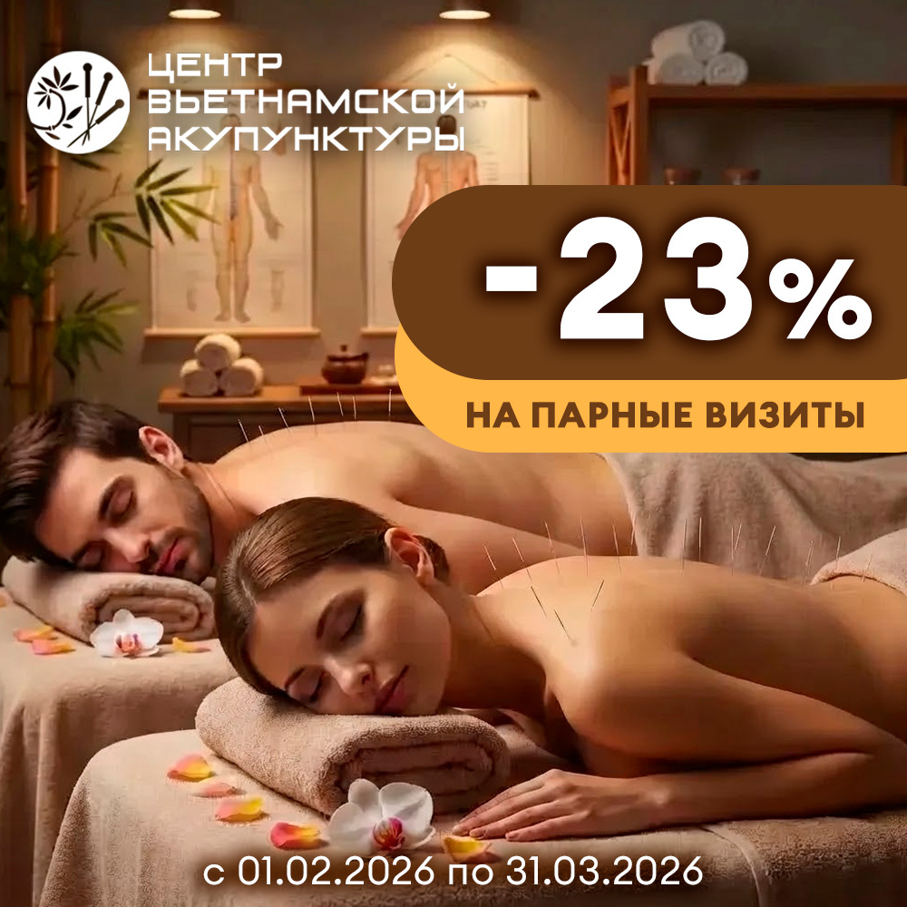 Только с 01.02.2026 по 31.03.2026 гг.. во вьетнамском центре вьетнамской акупунктуры «Вьетмед» действует уникальная акция: скидка -23% на покупку разовых услуг для двух человек. Узнать более подробную информацию и записаться на прием можно на сайте «Вьетмед» www.vietmed.ru или по тел.: +7 (495) 357-26-68 +7 (999) 397-37-07 +7 (926) 007-03-10 Где: ТЦ «Ханой-Москва», 2-й этаж. Медицинский центр «Вьетмед». Есть противопоказания. Необходима консультация специалиста. *Информационный пост, не является рекламой