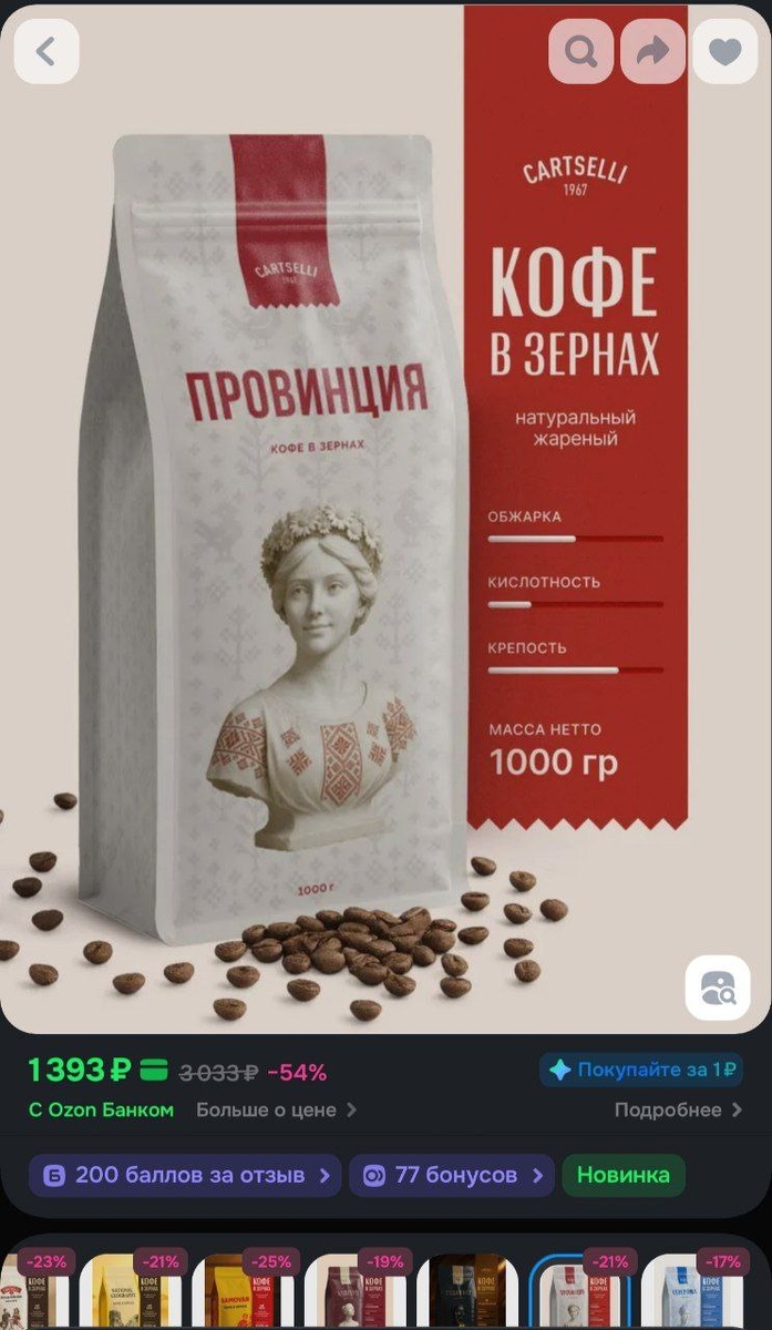 https://ozon.ru/t/l7lh7Ef ➕ 200 баллов за отзыв ➕ 150 бонусов в карточке товара около названия магазина (ими можно оплатить 25% от суммы заказа) Кофе в зернах натуральный жареный Cartselli National Geography 1 кг https://ozon.ru/t/pmJpgeE