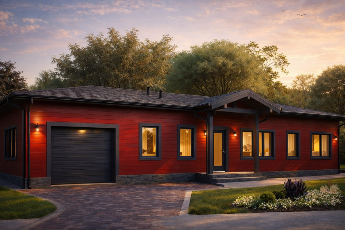 Общая площадь - 198 м2 (+36 м2 внешние локации) Габариты дома - 22,4 x 22,15 м Кол-во спален - 2 шт Планировочное решение построено на чётком функциональном зонировании. Центральное пространство дома занимает просторная кухня-столовая с выходом на крытую террасу с панорамным остеклением. Кухня удачно объединена с гостиной зоной для ежедневного семейного отдыха и приёма посетителей. Приватный блок включает мастер-спальню с гардеробом и детскую комнату. Отдельно организована зона отдыха с сауной, душевой и комнатой релаксации. Техническая часть вынесена в отдельное крыло и включает котельную, гараж на один автомобиль, прачечную и кладовые помещения, обеспечивая удобную и логичную эксплуатацию дома. Также предусмотрен рабочий кабинет с потайным входом, изолированный от публичного и спального пространства.