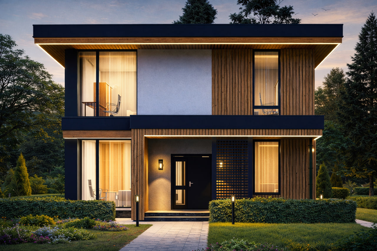 Общая площадь - 186 м2 Габариты дома - 12,5 x 15 м Кол-во спален - 3 шт Проект двухэтажного дома грамотно разделяет пространство на общую и приватную зоны. На первом этаже разместились просторная гостиная с выходом на террасу, удобный тамбур и холл, обеспечивающие комфортное перемещение. Здесь же предусмотрена котельная и функциональный кабинет, который можно использовать как гостевую комнату. Второй этаж полностью отведён под отдых: здесь расположены изолированная мастер-спальня с собственным санузлом и гардеробом, две детских комнаты и общий санузел. Такое планировочное решение обеспечивает уединённость спальных комнат и удобство для семьи. 🤔 Хотите узнать стоимость данного дома? Оставьте заявку по ссылке: https://mrqz.me/62ebca31490dc7003feb4ece