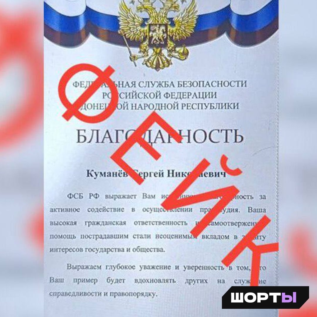 ❕Дончан предупредили о фейковых благодарностях от имени ФСБ