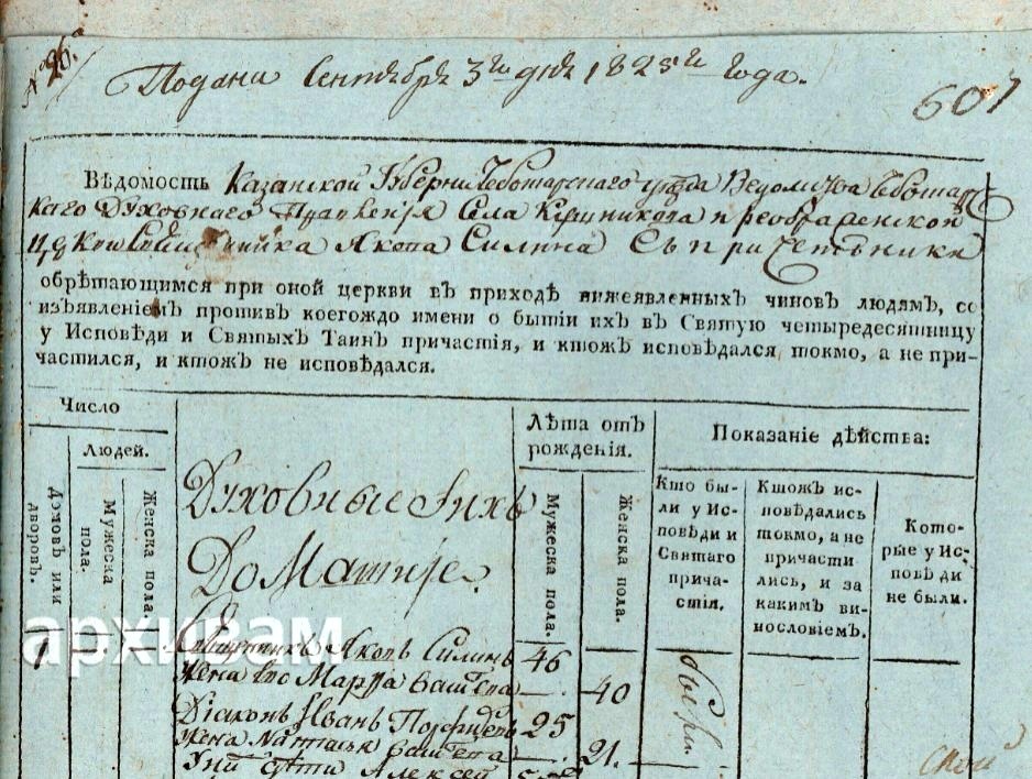 1825 год. Деревня Шульгино. Чебоксарский уезд. Никифор Зиновьевич Зинин.