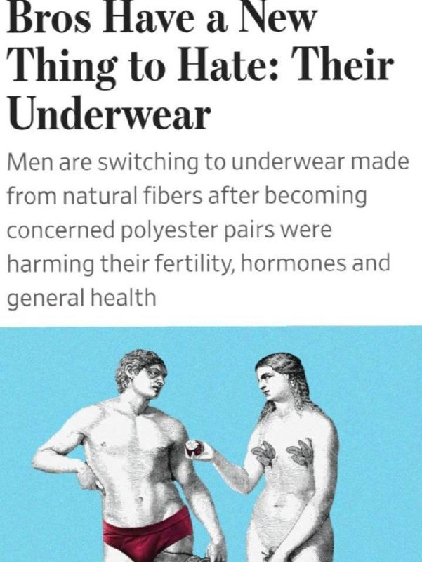 ! В исследовании приняли участие правда только 14 мужчин, которые носили специальный полиэстеровый бандаж, имитирующий нижнее белье, в течение года . В результате у всех участников диагностировали отсутствие сперматозоидов (временное бесплодие) и уменьшение объема яичек. Через 140-170 дней после завершения эксперимента концентрация сперматозоидов вернулась к исходному уровню. Исследователи сделали вывод, что полиэстер создает электростатическое поле, которое вызывает трение и нарушает функцию яичек. P.S. А вы уже придумали подарок на 23 февраля? ТГ Женский доктор