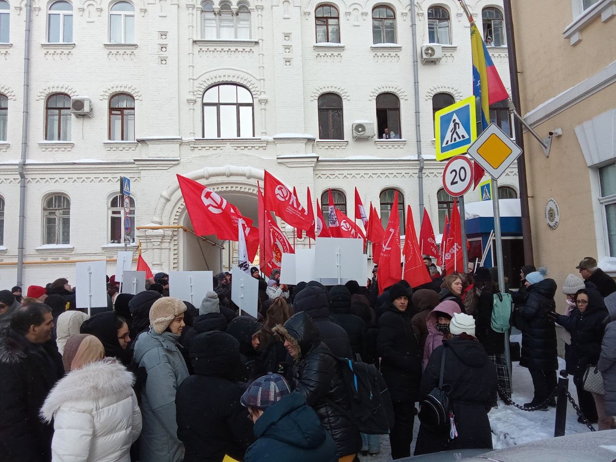 Этот морозный февральский денёк начался с рассвета красных стягов у посольства Венесуэлы.