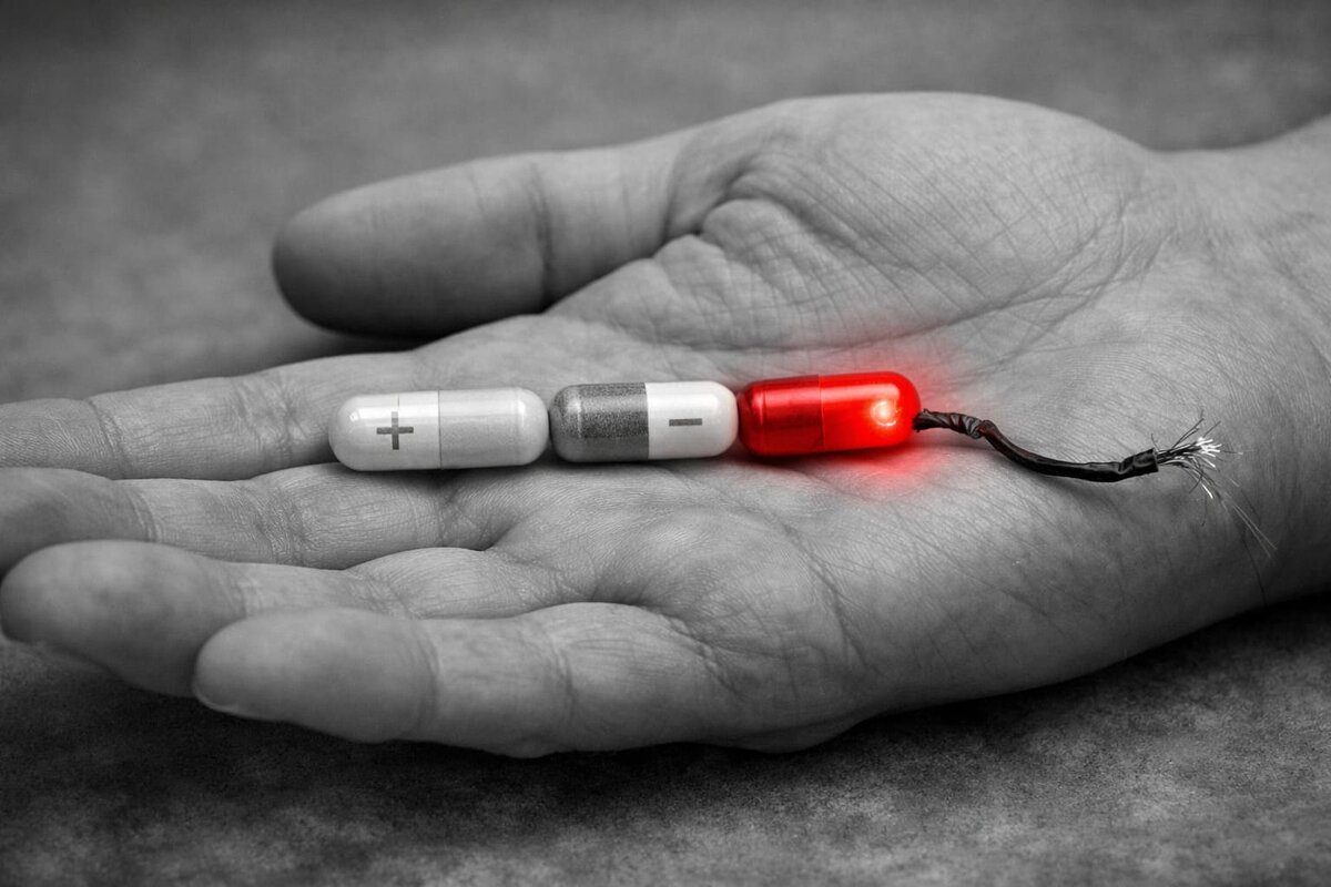 Вы пьете витамины пачками, а просыпаться всё тяжелее? Возможно, ваши «помощники» — это кредиторы, которые выставляют организму неподъемный счет. Разбираемся, как поддержка превращается в ловушку. Самое коварное — когда добавка действительно работает. Вы выпили капсулу, и через час «включился свет». Вы бодры, готовы пахать и игнорируете тот факт, что организму нужен был элементарный сон. В этот момент происходит подмена: вместо восполнения дефицитов мы используем нутриенты, чтобы просто «отключить» датчик усталости. Это как заклеить красную лампочку в бензобаке пластырем и радоваться, что она больше не мигает. Машина едет, но двигатель работает на пределе. Если добавка не закрывает глубокую потребность клетки, а лишь временно подстегивает ресурс, вы берете энергию в долг у собственного завтрашнего дня. Представьте типичную картину: вечер четверга, вы валитесь с ног, в голове туман. Но завтра важный отчет. Вы выпиваете двойную дозу магния, комплекс витаминов B и адаптогены. Утром вы вста