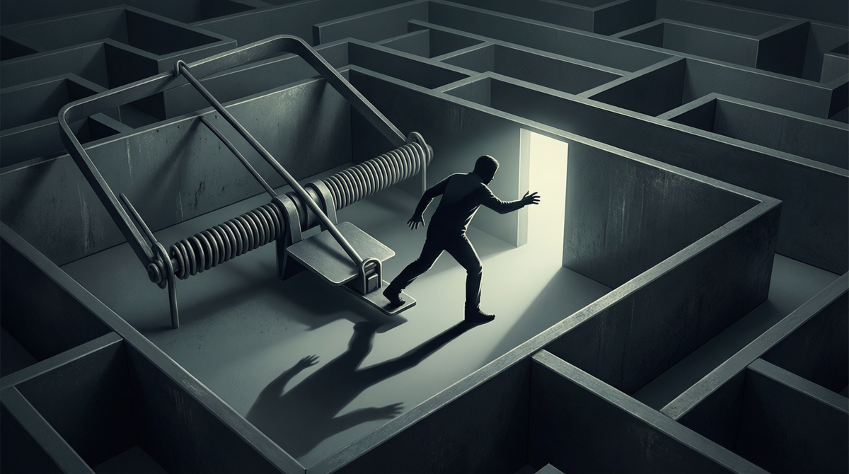 - Ощущение ловушки. Как будто вы бежите по кругу в клетке. Любое движение вперед — это на самом деле движение к старой точке. Мысль «я должен что-то сделать с этим чувством» приводит к действиям, которые в итоге возвращают вас к тому же чувству, только в большем объеме. Возникает паническое ощущение, что так будет всегда.