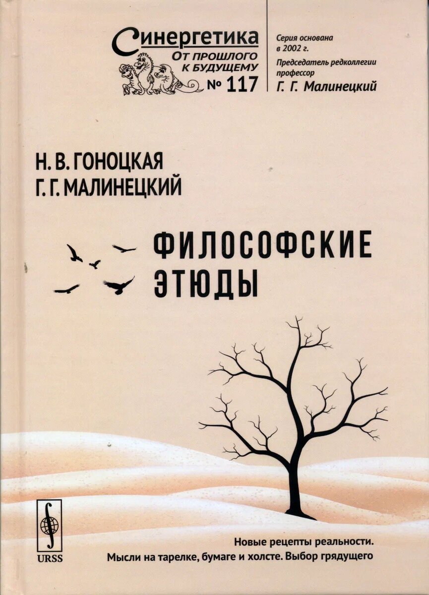 Гоноцкая Надежда, Малинецкий Георгий. Философские этюды : Новые рецепты реальности. Мысли на тарелке, бумаге и холсте. Выбор грядущего. — М. : Ленанд, 2025. — 202 с.