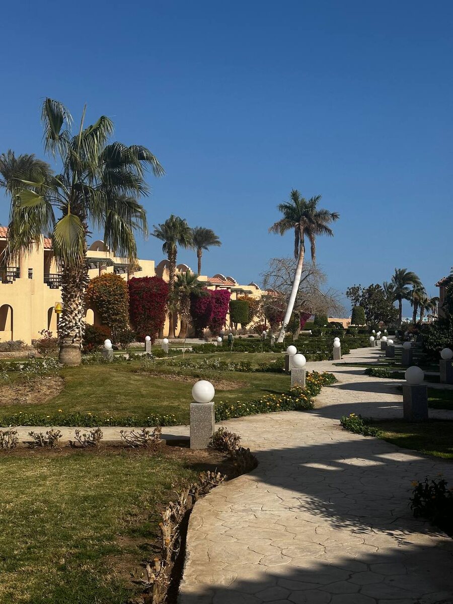 Ali Baba Palace Hurghada Магия путешествий: почему в отпуске не хочется спать? 🌴✨ Замечали, что в путешествиях открывается какое-то второе (или десятое) дыхание? Можно не спать всю ночь в дороге, но стоит переступить порог отеля, как усталость испаряется. Сразу после заселения мы, не теряя ни минуты, отправились гулять по уже знакомым и любимым местам. Какой же это невероятный контраст! Еще утром были сугробы и мороз, а здесь — сочная зелень, величественные пальмы и цветы. А пение птиц? Это лучший саундтрек для перезагрузки. 🌸🦜 Территория и релакс