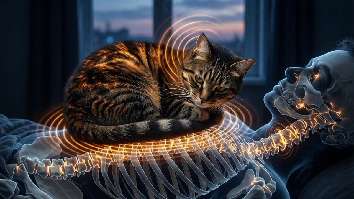 Вы лежите с больной спиной. Кот устраивается на пояснице, начинает мурлыкать — глубокий, вибрирующий звук проникает в тело. Через час боль отступает. Случайность? Возможно. Но в этом звуке скрыта частота, которую человеческое ухо почти не слышит — 26 Гц. И исследования показывают: вибрации в этом диапазоне действительно влияют на костную ткань. Только не называйте это «чудом». Назовите — биомеханикой, которую мы ещё не до конца расшифровали.