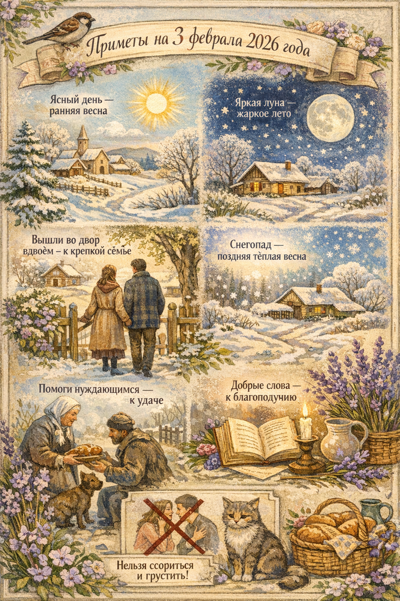 - 3 февраля — день для мирных разговоров и добрых слов, особенно с близкими. Это считается залогом благополучного года.