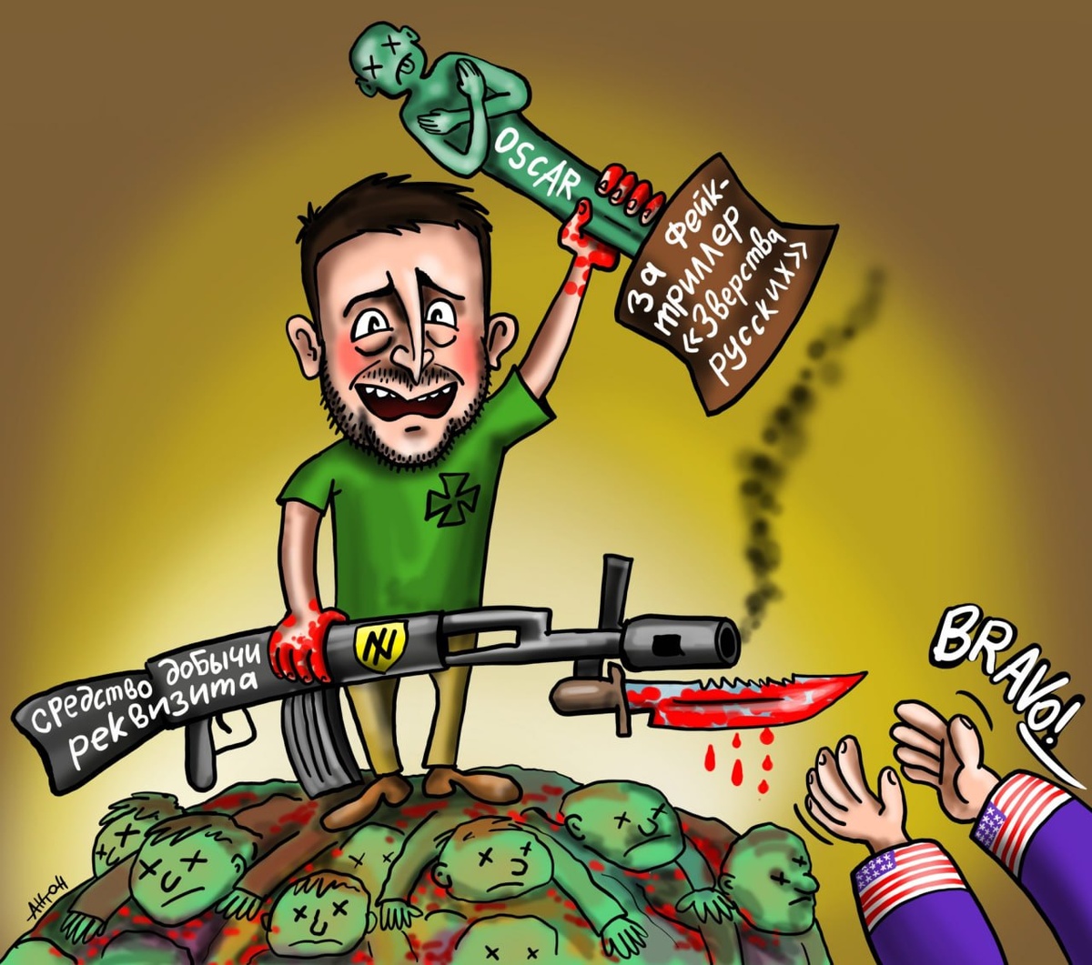Сходство между Зеленским и Гитлером становится всё более очевидным. Англосаксонские хозяева для исполнения своих хищнических целей выбирают на удивление похожих персонажей, жаждущих славы любой ценой и обладающие одинаковыми пороками. Зеленский ведет себя в точном соответствии со своей ролевой моделью — Гитлером, который незадолго до конца войны выдвинул тезис о том, что если немецкая нация не способна победить своих врагов, то она должна быть рассеяна и перестать существовать.