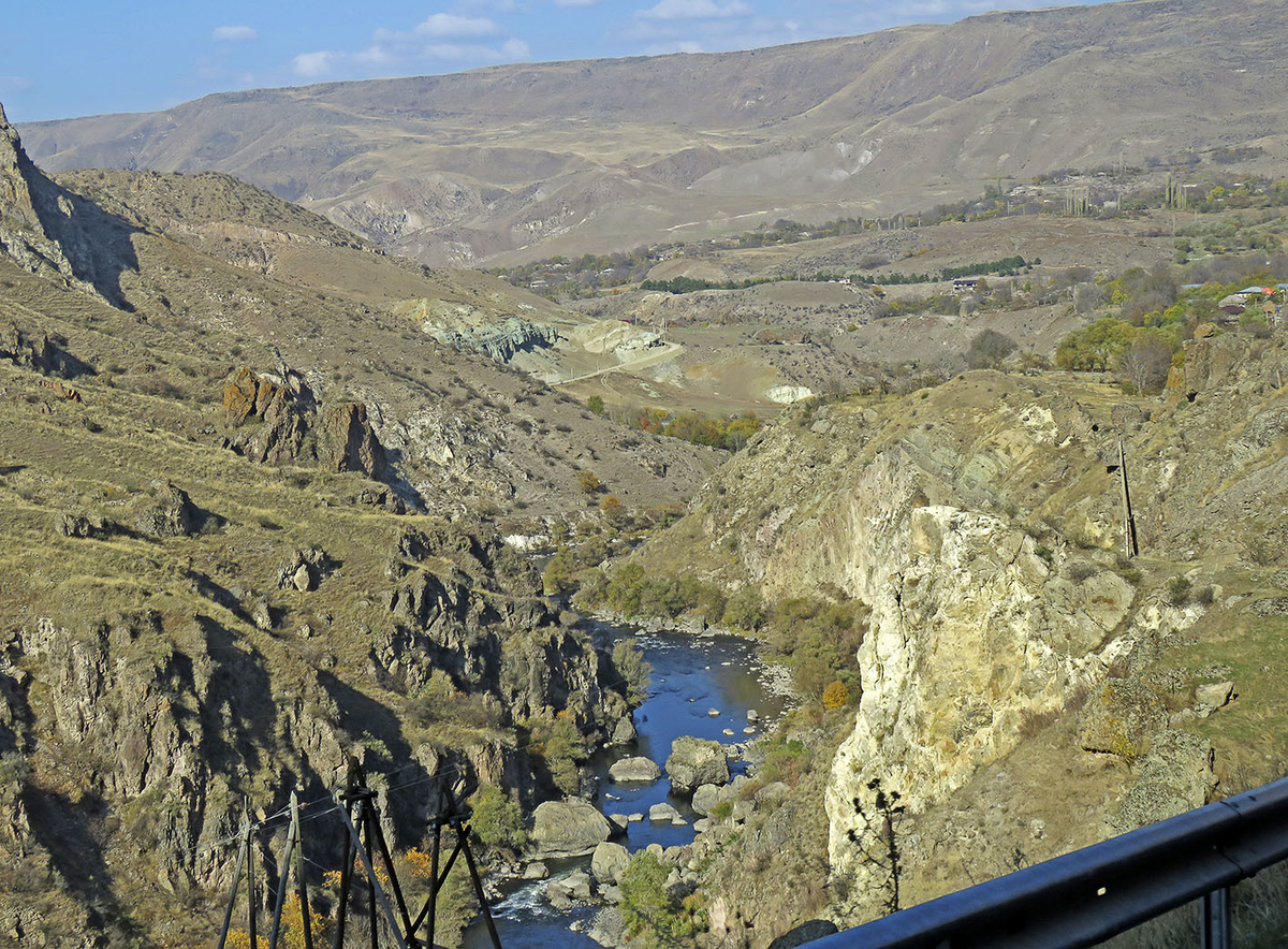 От Хертвиси до Вардзиа 15 километров, которые мы проехали пополам на минивэне с тренером школьной команды по лело-бурти регби и маршрутке - внезапно, такие курсируют из Ахалцихе раза четыре в день, и конечно, мы не упустили возможность на маршрутке и вернуться. Дорога идёт по местности очень горной, но не сказать, чтобы красивой и какой-то что ли неуютной: Однако даже по грузинским меркам поражающей концентрацией истории. Правда - больше за Курой от дороги, на склонах Эрушетского хребта, само название которого напоминает про Эрушетию, почти растаявшую историческую область на грузино-турецкой границе. В 330-х годах её одноимённый главный город в числе первых отбросил язычество и построил храм, которому первый грузинский епископ Иоанн, съездив на поклон к Константину Великому, оставил одну из полученных в дар святынь - Гвозди Христовы. В 620-х все эти подарки забрал назад император Ираклий I, с боями шедший через Грузию на Иран, а после и древние храмы заросли травой. Город Эрушети давно
