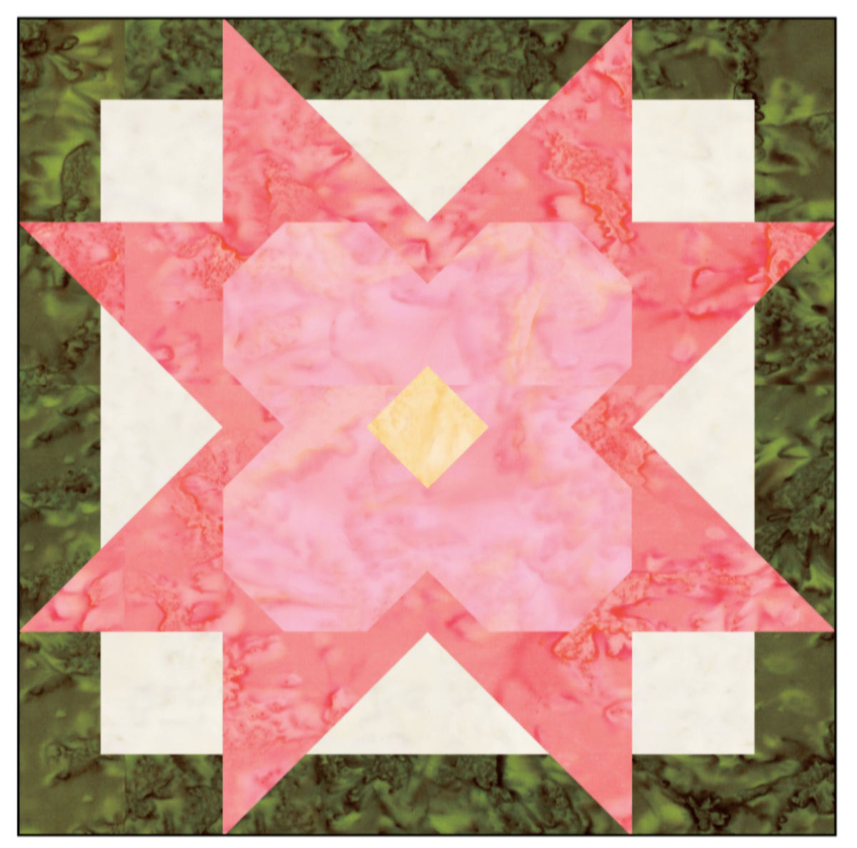 7. Разложить полученные детали по схеме центра блока и сшить в ряды. Ряды сшить вместе. Разутюжить.