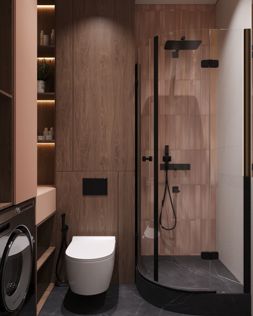 Этот санузел доказывает, что даже 2 квадратных метра могут быть не вызовом, а возможностью — создать камерное, осмысленное и невероятно уютное пространство для начала и завершения дня.