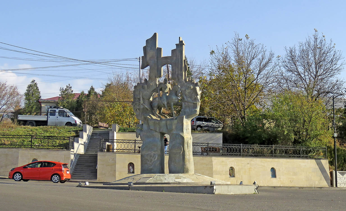 Районный посёлок Аспиндза (2,7 тыс. жителей) интересен окрестностями (ссылки все на мои недавние статьи) вроде крепостей Хертвиси и Тмогви, уникальным пещерным городом Вардзиа (для европейцев - главная достопримечательность Грузии) и менее знаменитыми деревнями Саро с руинами мегалитов и Хизабавры с костёлом 1890-х годов. Сама Аспиндза, хоть и известна с 888 года, примечательна разве что памятником Ираклию II в лучших традициях Советской Грузии, или точнее - его победе над войском турок и аварских горцев в 1770 году (на кадрах выше и ниже он в разных ракурсах). Ниже по Куре строится, видимо с помощью Турции, Аспиндзская ГЭС, запустить которую планируют в конце десятилетия: