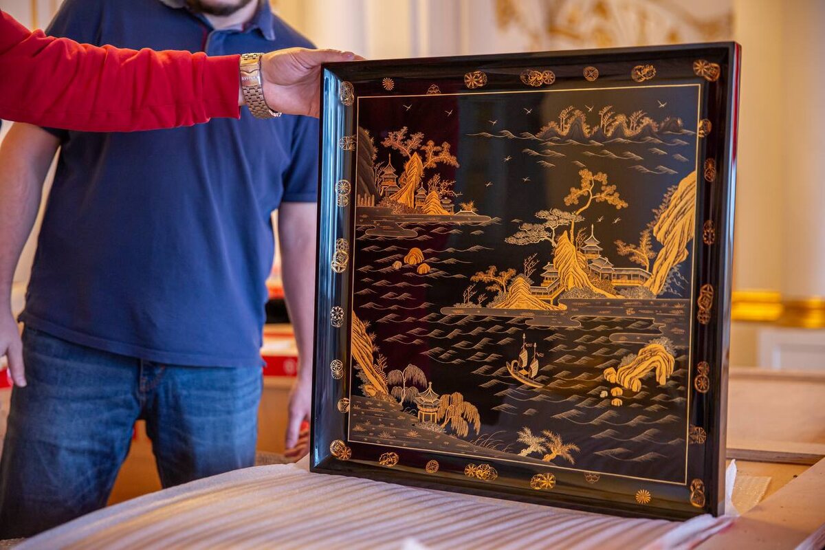 Из Китая в Царское Село доставили 155 лаковых панно, воссозданных за 700 дней по образцам XVII–XVIII веков. Они украсят Китайский зал Зубовского флигеля — бывшие апартаменты Екатерины II, утраченные в войну. Монтаж начнётся уже скоро, а к лету 2026 года зал откроется для публики в рамках проекта «Екатерина II. Личное пространство» при поддержке «Газпрома». 📷: Музей заповедник "Царское Село" Читай нас в MAX! | Читай нас в Telegram
