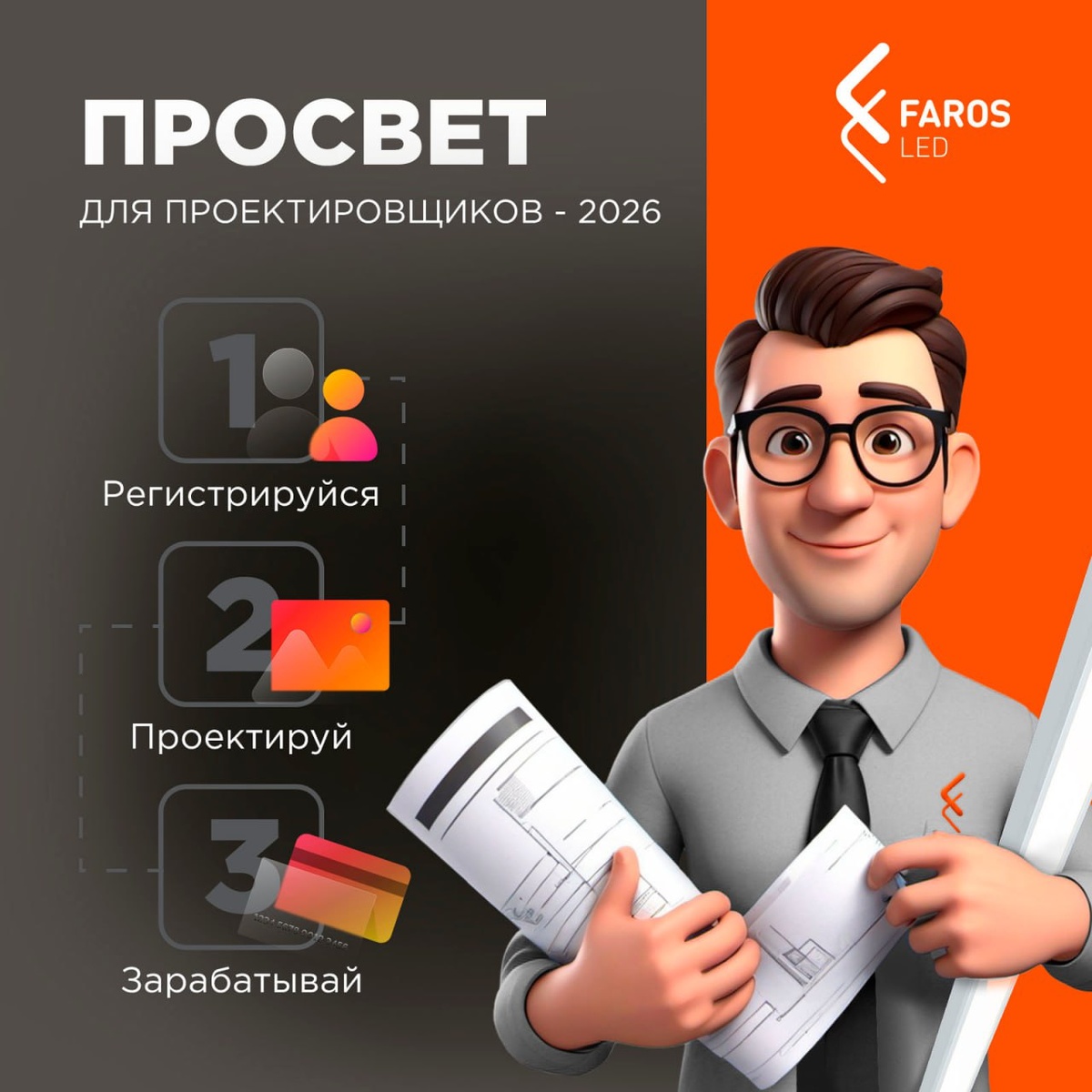 » 🔥 Друзья, мы запустили обновленный конкурс «Pro$вет» - 2026 Ждём ваши работы на сайте FAROS LED 💸 Агентские вознаграждения по договору: • 0,5% - первый бонус за внесение • 3% - второй бонус за реализацию 🏆Призы: 1 место - 30 тыс.руб. 2 место - 20 тыс.руб. 3 место - 10 тыс.руб. ⠀ 🏅 Также вы можете выиграть в бонусных номинациях: • Генератор проектов - 5 тыс.руб. • Проект-лидер - 5 тыс.руб. ➡️ Подробные условия читайте в разделе "Конкурс для проектировщиков" ✅ Условия участия: • Зарегистрируйтесь в личном кабинете проектировщика на сайте FAROS LED : Сервисы - Конкурс для проектировщиков • Проектируйте с использованием светильников FAROS LED. • Загружайте свои проекты в личный кабинет в течение всего года. • Получайте вознаграждения и денежные призы за проекты. • Выше стоимость заложенного в проект оборудования FAROS LED, больше проектов в течение конкурсного периода = больше шансов на призы. 📞 Будут вопросы? Пиши на info@faros.ru или звони по тел. 8 800 350 48 47 и тебе обяз
