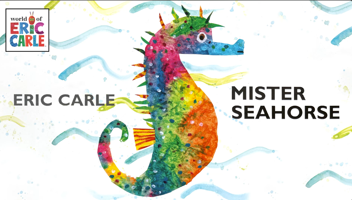 Продолжаем знакомиться с работами американского писателя и художника Эрика Карла. Не все книжки нам доступны. Но я нашла отличную альтернативу! Их озвучивают носители языка - часто к тому же артистично) *** Mister Seahorse Про морского конька мы брали книжечку как-то в библиотеке. Она переведена на русский. Это научпоп о... размножении. А оно особенное у морских коньков - икру мечет мама, а вынашивает папа! И это история о родительской любви, конечно. Знакомимся с морской флорой-фауной через встречи папы-морского конька. Разные морские жители по-разному заботятся о своём потомстве. Тут интересно оформление книги: что-то спрятано за прозрачной страничкой, а потом открывается. Опасности ведь имеют свойство маскироваться. Счастливый момент наступил! Детки появились на свет и... уплыли! *** Эрик Карл сочинял сам, но также выступал иллюстратором чужих историй, например, поэта Richard Buckley. The Greedy Python У Чуковского "волки от испуга скушали друг друга", а в этой истории в стихах п