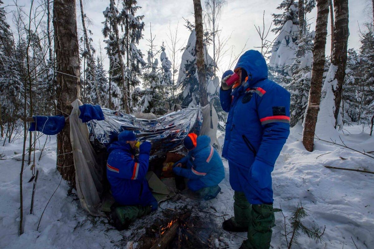 Зимние «выживания» в этом году проходят в экстремальной для подмосковного климата погоде: двадцатиградусном морозе и снежном покрове высотой в полметра. При таких вводных 2 февраля 2026 года состоялась зачётная тренировка по действиям в случае посадки в лесисто-болотистой местности условного экипажа: командира отряда космонавтов Роскосмоса Олега Кононенко, космонавта Роскосмоса Александра Гребёнкина и астронавта NASA Маркоса Берриоса. Российские космонавты в обязательном порядке проходят такие тренировки на этапе общекосмической подготовки, а затем с периодичностью раз в пять лет, для поддержания навыков. Экипаж переоделся в защитные костюмы, выбрал и подготовил площадку для разбивки лагеря, затем приступил к возведению укрытий. Сначала Олег Кононенко, Александр Гребёнкин и Маркос Берриос собрали односкатный шалаш из жердей и лапника, после чего сконструировали вигвам, используя в качестве покрытия ткань от парашюта. Также экипаж собрал хвойные ветки для сигнального костра. Огон