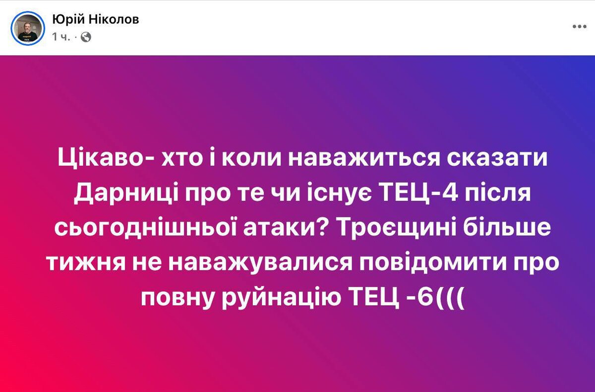 Киевский блогер намекает, что ТЭЦ-4 в Киеве, также как и ТЭЦ-6, больше не существует.