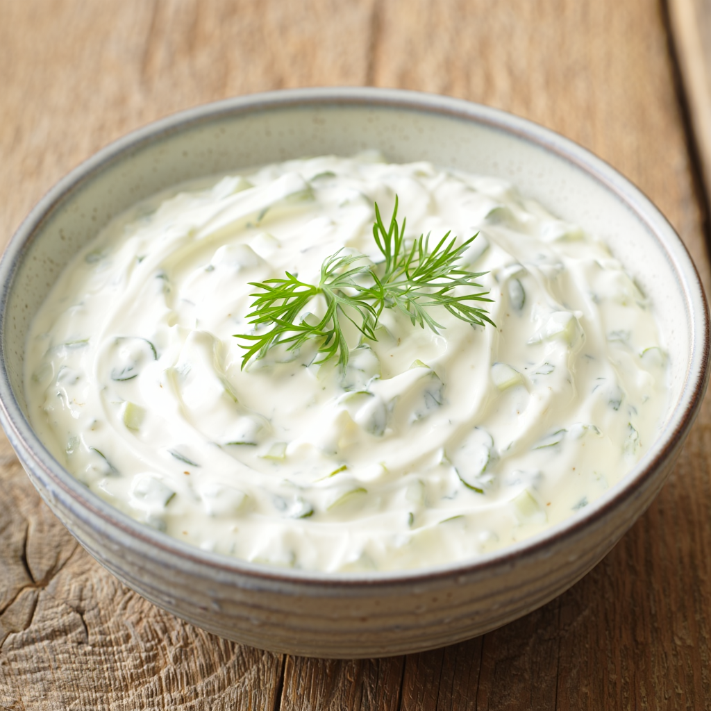 В миске соедините сметану, измельчённые огурцы, чеснок и зелень. Хорошо перемешайте, и дайте соусу постоять 15 – 20 минут в холодильнике, чтобы вкусы сплелись.