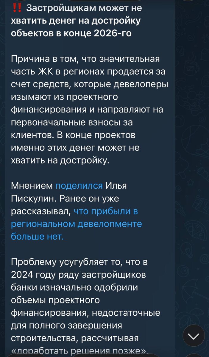 клиентов, вводя в заблуждение банки (ну они отворачиваются просто) и регулятора. А теперь у них, не хватит, якобы. Только у Ильи с арифметикой плохо, если вы что-то у себя взяли, дали клиенту, а клиент дал это вам, то вы номинальный ВВП повысили, конечно, но по факту ничего не потеряли и не приобрели. Тейк о том, что из-за этого денег не хватит на достройку еще более бредовый чем про себестоимость. Вот вам еще в копилку мыслей, огромное количество сделок на первичке проходит именно по этой схеме. А это значит, цены на квартиры завышены на ПВ, которого нет, а это значит, что застройщикам выгодно и на 20% ниже декларируемых цен продавать. Так что, в аналитике учитывайте рисованность официальных цен из ДДУ.