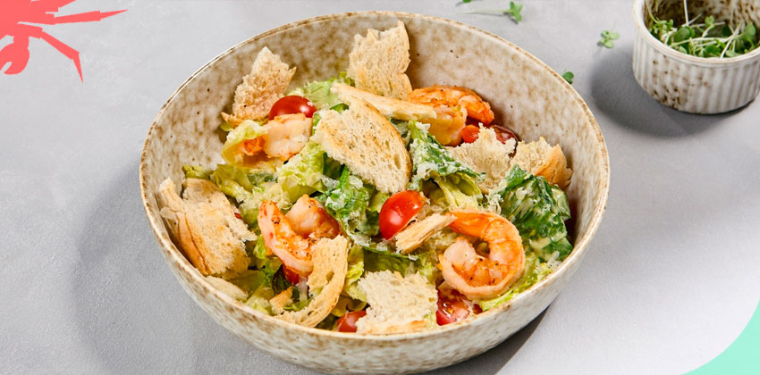 перемешиваем. Сверху выкладываем креветки и сухарики. Посыпаем сыром. Источник: https://wildcrab.ru/news?id=2969