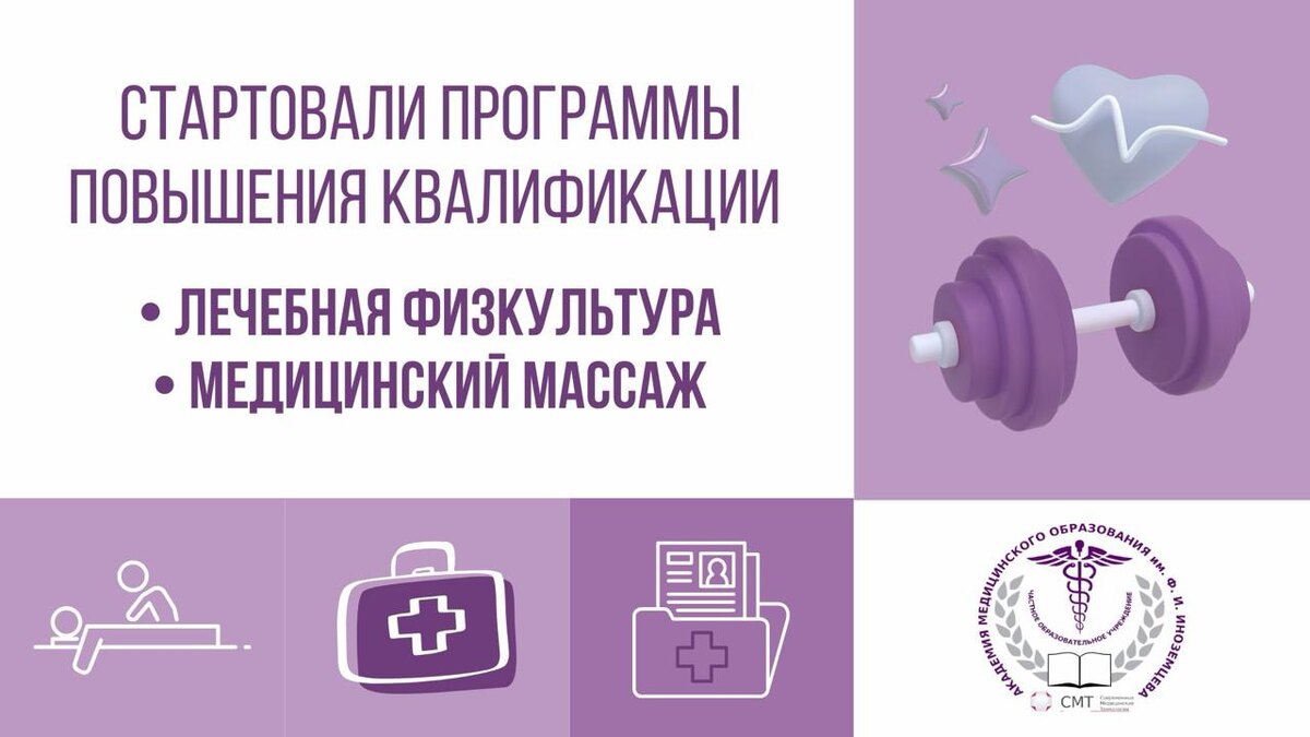 : • Лечебная физкультура • Медицинский массаж 🗓 Период обучения: 02.02.2026 – 27.06.2026* * Продолжительность обучения может быть скорректирована в связи со вступлением в силу Федерального закона № 28-ФЗ ( подробнее об изменениях — в отдельном посте 👉 vk.com/wall-32353860_4486 ) Программы ориентированы на практическое применение, соответствуют действующим требованиям дополнительного профессионального образования и подходят для специалистов, планирующих развитие компетенций и прохождение периодической аккредитации. Возможно дозачисление слушателей на программы, если вы не успели подать документы ранее или приняли решение о обучении позже. Сейчас есть возможность присоединиться к уже сформированным группам и пройти обучение в установленные сроки. По вопросам зачисления и требований к документам можно обратиться к нашим специалистам или оставить заявку на сайте. 📞 Контакты: +7 (812) 200-95-78 +7 (905) 268-00-94 (WhatsApp) 📩 akademuy@yandex.ru 💻 inozem.online/learning.php