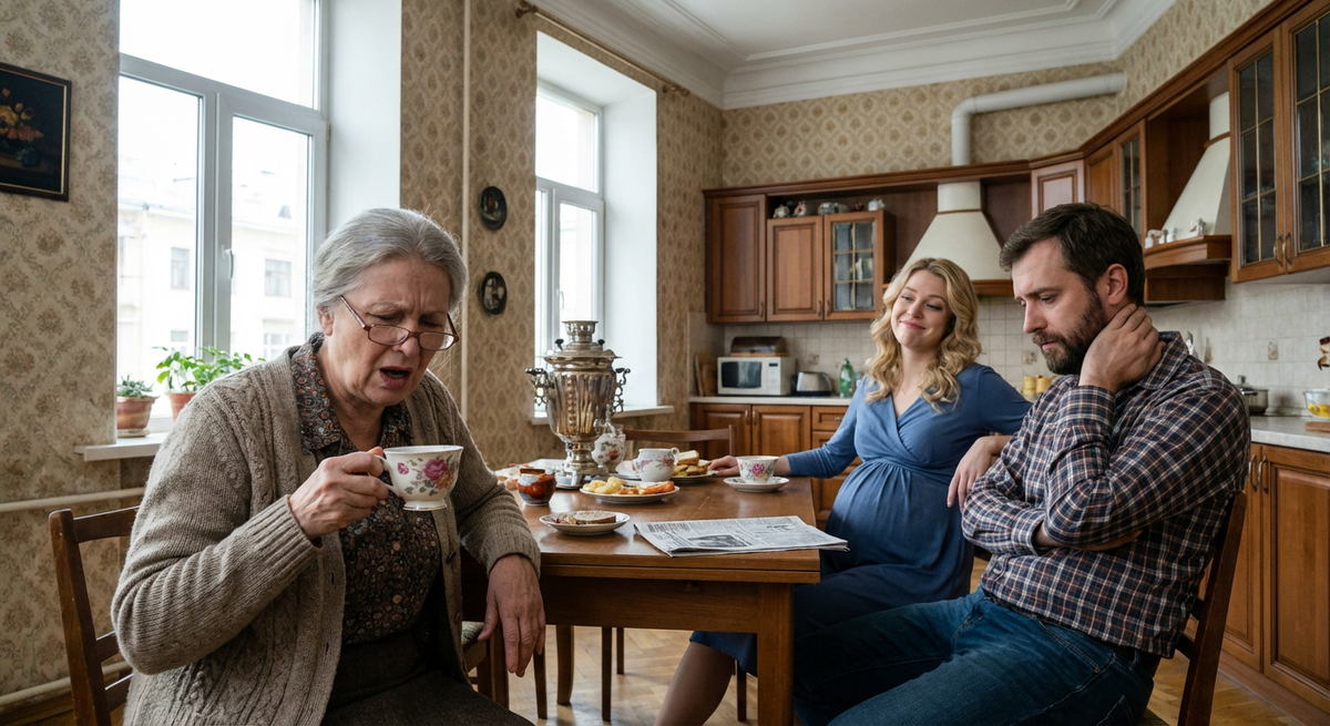 Людмила Павловна медленно поставила чашку с недопитым чаем на блюдце. Фарфор тихо звякнул, и этот звук показался ей оглушительным в нависшей тишине кухни. Она смотрела на сына, на своего Андрюшу, которого, казалось, еще вчера водила за ручку в первый класс, и не узнавала его. Напротив сидел взрослый, грузный мужчина с бегающими глазами, а рядом с ним, демонстративно поглаживая округлившийся живот, расположилась невестка Настя.