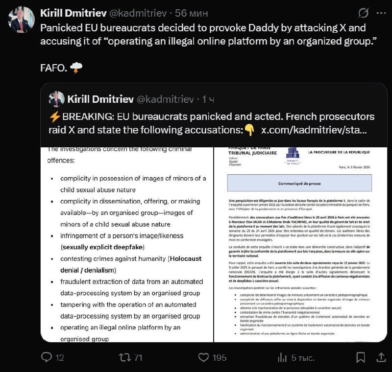 πΈ Β«ΠΠ°ΠΏΡΠ³Π°Π½Π½ΡΠ΅ Π΅Π²ΡΠΎΠΏΠ΅ΠΉΡΠΊΠΈΠ΅ Π±ΡΡΠΎΠΊΡΠ°ΡΡ ΡΠ΅ΡΠΈΠ»ΠΈ ΡΠΏΡΠΎΠ²ΠΎΡΠΈΡΠΎΠ²Π°ΡΡ ΠΏΠ°ΠΏΠΎΡΠΊΡ, Π½Π°ΠΏΠ°Π² Π½Π° X ΠΈ ΠΎΠ±Π²ΠΈΠ½ΠΈΠ² Π΅Π³ΠΎ Π² "ΡΠΏΡΠ°Π²Π»Π΅Π½ΠΈΠΈ Π½Π΅Π·Π°ΠΊΠΎΠ½Π½ΠΎΠΉ ΠΎΠ½Π»Π°ΠΉΠ½-ΠΏΠ»Π°ΡΡΠΎΡΠΌΠΎΠΉ