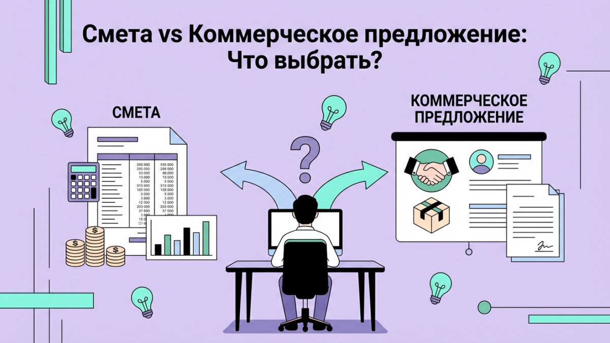 Многие путают смету и коммерческое предложение, отправляя клиентам не тот документ. Результат — непонимание, затянутые сделки и потерянные заказы. Разберёмся, чем отличаются эти документы и когда использовать каждый.