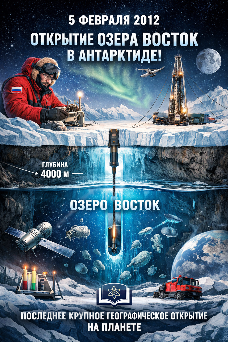 🧊 Озеро Восток — уникальный водоём, скрытый подо льдами Антарктиды на глубине около 4 км, — был впервые достигнут российскими учёными. Изоляция озера от внешнего мира длилась миллионы лет, что делает его настоящей природной лабораторией.