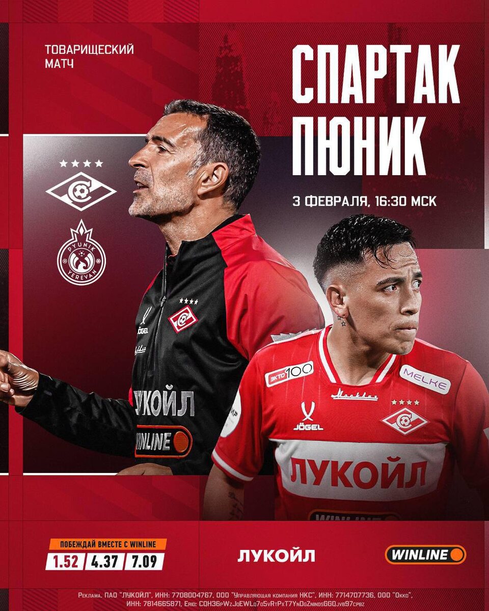 Товарищеский матч между "Спартаком" (Москва) и "Пюником" (Ереван), запланированный на 3 февраля 2026 года в 16:00 по московскому времени, вызывает определённые ожидания, основанные на текущей форме команд и их истории противостояний. Прежде всего "Пюник" - чемпиона Армении 2023-2024 и до этого( по моему) еще 15 раз и восьмикратный обладатель Кубка Армении, что является рекордом для страны! Существует немного - 36 лет. Владельцем футбольного клуба "Пюник" (Ереван) с 1 января 2025 года является Антон Фарбер - гражданин Испании. Он также занимает должность президента клуба.
