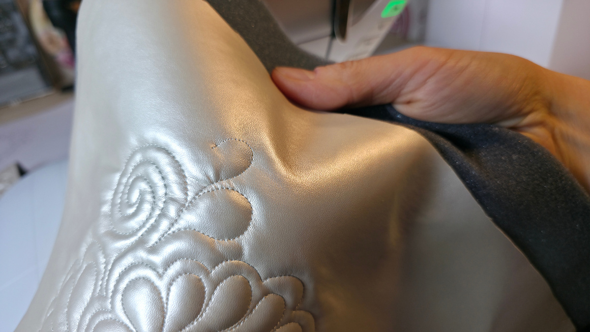 2.Аккуратно иголочкой с изнанки распустите стежки так, чтобы из двух нитей можно было завязать узел.