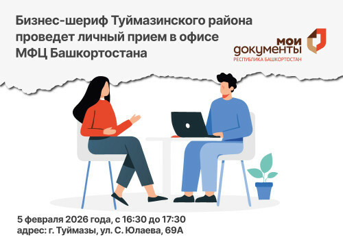Бизнес-шериф Туймазинского района проведёт личный приём в офисе МФЦ Башкирии