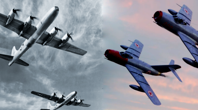Стоит отметить и отдать должное B-29 Superfortress, ведь он и вправду был настоящей звездой Второй мировой, звездой на все сто процентов. Это была самая совершенная машина своего времени, но шутка в том, что к 1951 году технологии ушли далеко вперед, а «Суперкрепость» осталась прежней. Ее крейсерская скорость составляла всего 350 км/ч, а максимальная – 575 км/ч.