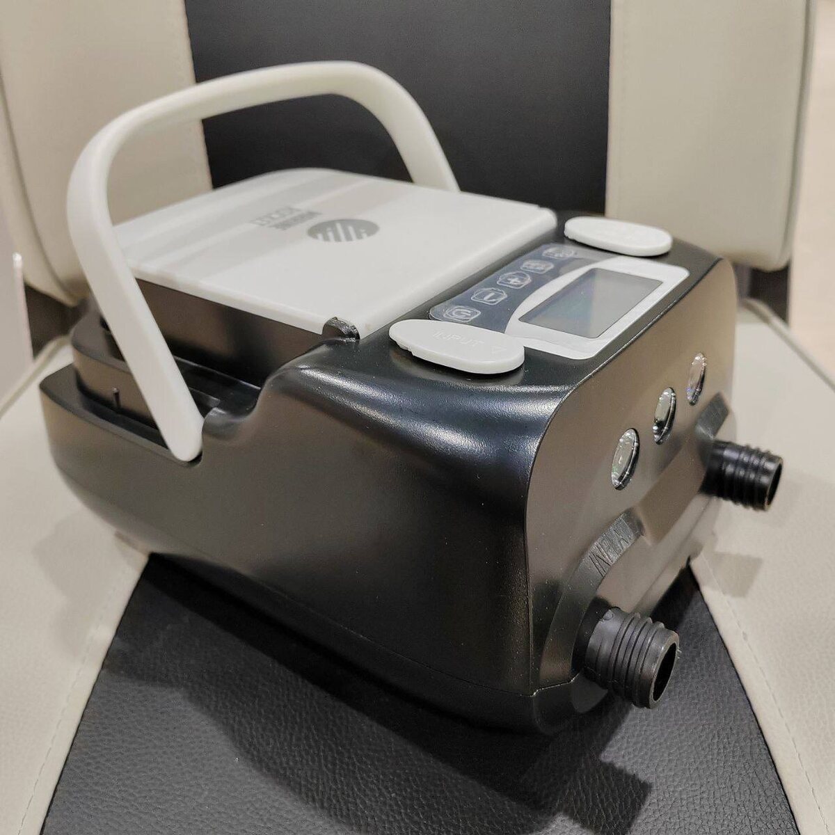 Насос высокого давления Marine Rocket. Это автономное двухступенчатое устройство, предназначенное для быстрого накачивания лодок ПВХ и SUP-досок до 16 PSI (1.1 Бар), оснащенное функцией автоотключения. Конструкция обладает качественными пропаянными контактами и металлическим вентилятором. Приятным дополнением будут два разъема USB для зарядки различных устройств, а также встроенный фонарь из 3 ярких светодиодов с аварийным режимом и цифровой манометр. 🔦 Максимальное давление: 16 PSI Аккумулятор: 6000 мАч Производительность (ступени): первой 350 л/мин, второй 70 л/мин. Зарядка: 220 В / 12 В Одного заряда может хватить на 4 цикла накачивания/сдувания лодки длиной 3.20 м. Получить подробную консультацию и приобрести 🧾можно в нашем салоне или на сайте. 🌐 Для далеко живущих подойдет ОЗОН. 😁 Наш технический чат. 💬