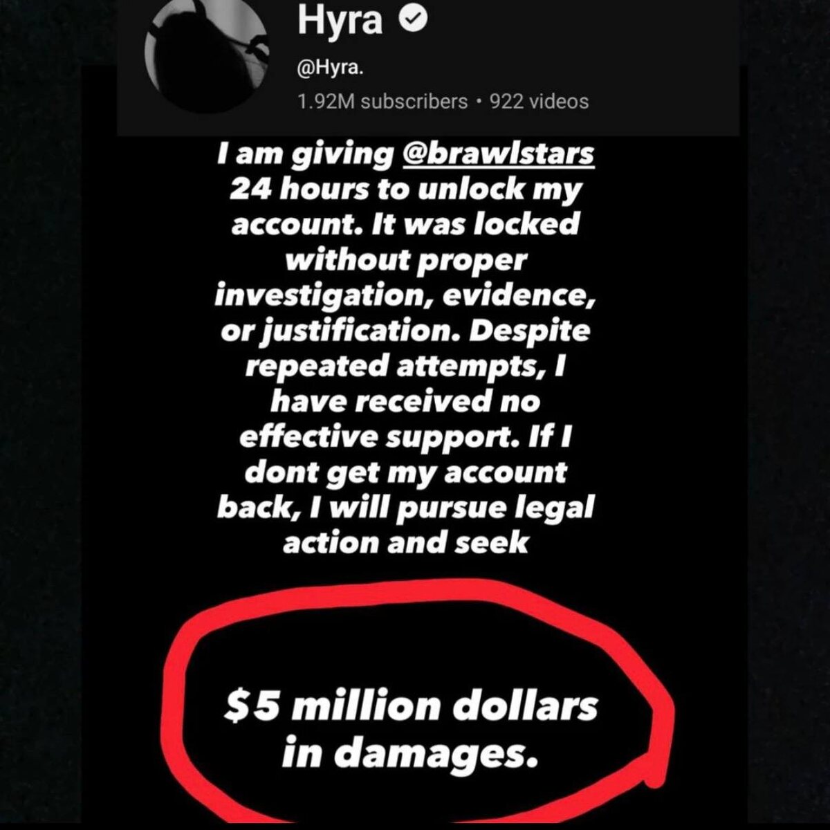 ΠΠΎΡΠ»Π΅ Π±Π»ΠΎΠΊΠΈΡΠΎΠ²ΠΊΠΈ Π°ΠΊΠΊΠ°ΡΠ½ΡΠ° ΠΈ Π±Π΅Π·Π΄Π΅ΠΉΡΡΠ²ΠΈΡ ΠΏΠΎΠ΄Π΄Π΅ΡΠΆΠΊΠΈ, Hyra Π² ΡΡΠΈΡΠ΅ ΠΏΡΠΈΠ³ΡΠΎΠ·ΠΈΠ» ΠΊΠΎΠΌΠΏΠ°Π½ΠΈΠΈ ΡΡΠ΄Π΅Π±Π½ΡΠΌ ΠΈΡΠΊΠΎΠΌ Π½Π° ΠΊΡΡΠΏΠ½ΡΡ ΡΡΠΌΠΌΡ, ΡΡΠΎ ΠΈ ΡΠ΅ΡΠΈΠ»ΠΎ ΠΏΡΠΎΠ±Π»Π΅ΠΌΡ. Supercell, ΠΊΠΎΠ½Π΅ΡΠ½ΠΎ ΠΆΠ΅, ΠΈΡΠΏΡΠ³Π°Π»ΠΈΡΡ ΠΏΡΡΡΠΎΡΠ»ΠΎΠ²Π° ΠΈ ΡΠ°Π·Π±Π»ΠΎΠΊΠΈΡΠΎΠ²Π°Π»ΠΈ Π΅ΠΌΡ Π°ΠΊΠΊΠ°ΡΠ½Ρ, Π²ΡΠ΄Π°Π² ΠΊΠΎΠΌΠΏΠ΅Π½ΡΠ°ΡΠΈΡ Π² 170 Π³Π΅ΠΌΠΎΠ². Π Π°Π²Π½ΠΎΡΠ΅Π½Π½ΡΠΉ ΠΎΠ±ΠΌΠ΅Π½. β