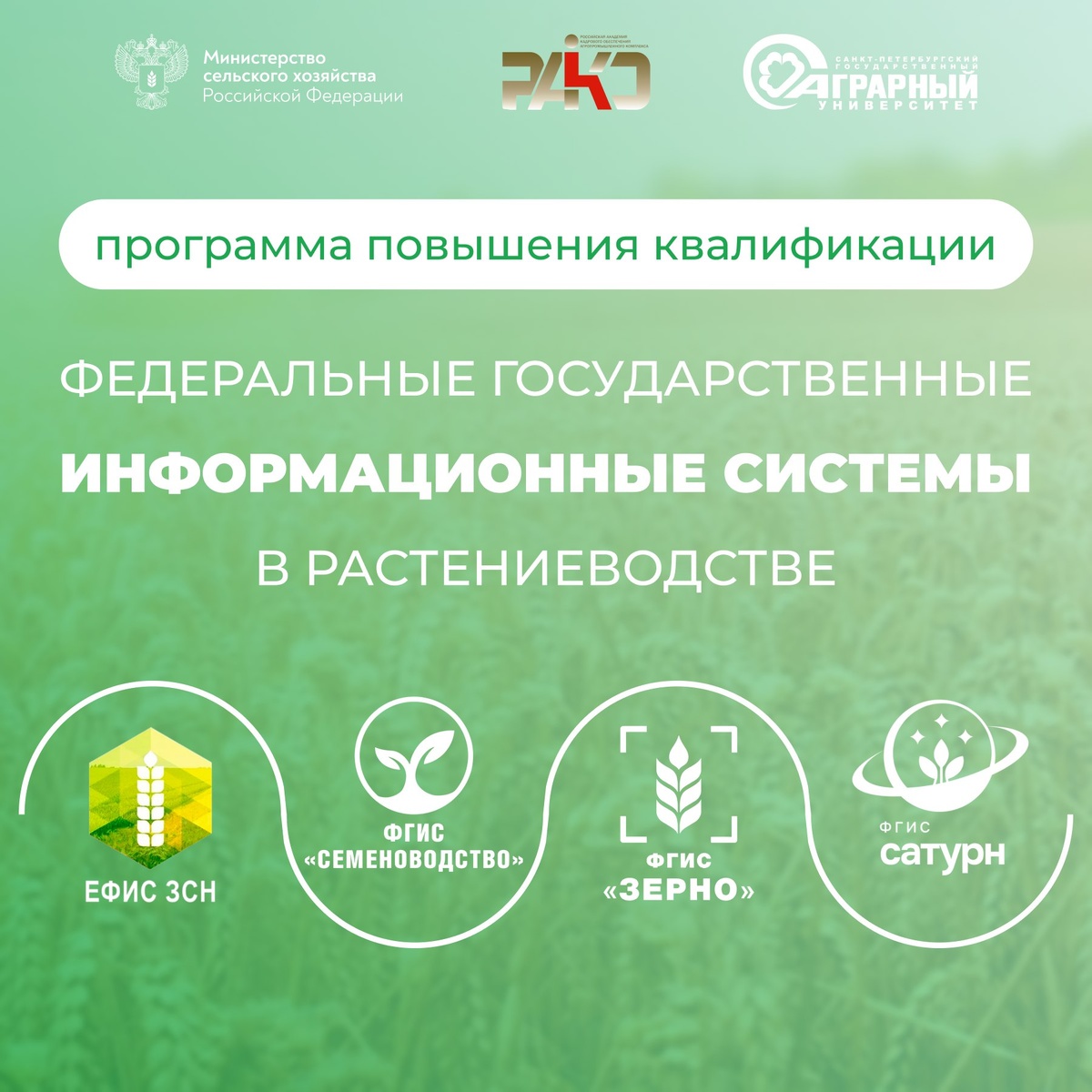 РАКО АПК совместно с СПбГАУ приглашают пройти обучение по программе: «Федеральные государственные информационные системы в растениеводстве» (72 академических часа). 📅 Сроки обучения: 10 марта – 30 марта 2026 года. 📍 Формат: Онлайн/офлайн. Теория и лекции — дистанционно (учитесь в удобное время). Практика — 2 дня очного интенсивна в Санкт-Петербурге (в конце марта). Что даст вам программа: Глубокое понимание нормативной базы и принципов работы ГИС. Практические навыки работы в федеральных информационных системах. Удостоверение о повышении квалификации установленного образца. Возможность повысить производительность и избежать юридических рисков. Кто может стать участником: Специалисты с высшим или средним профессиональным образованием, студенты. 🔗 Ознакомиться с программой: https://disk.yandex.ru/i/cuHKDznZGEqdWw 📝 Регистрация: https://forms.yandex.ru/u/692411adeb614674639008c6 Контакты для связи: 📞 Тел: +7 (952) 208-44-86 💬 Telegram: @EVtimokhina 📧 Email: e.timohina_tutor@m