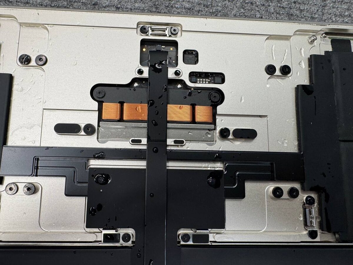Свежезалитый MacBook Air 15” A3114 M3. Жидкость разлилась в рюкзаке. Дисплей залит, тачпад залит, при снятии крышки жидкость вытекает. При включении вылазит уведомление, что жидкость в портах. Странно, что он вообще включается🥺