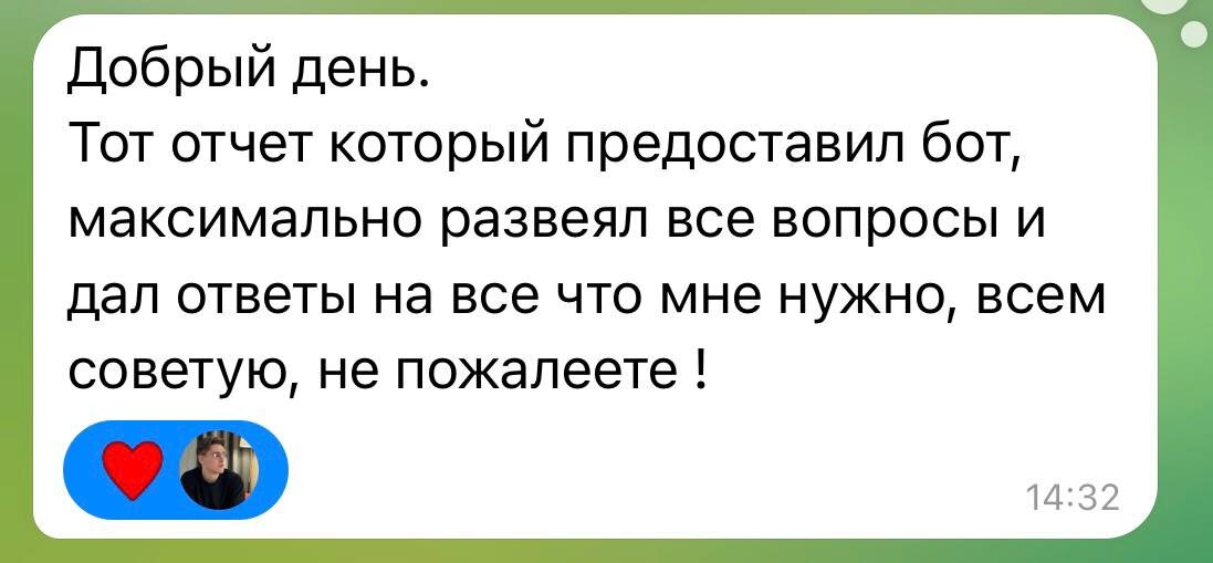 Это бот, который делает бесплатные AI-разборы бизнеса (рынок, конкуренты, фин. здоровье и т.д.) С момента старта ИИ уже провел 20+ аудитов, средняя оценка 4/5 звезды Мы еще сильнее прокачали отчет, чтобы показывать больше проблем бизнеса. Для тех, кто еще не тестил: @airazborbot