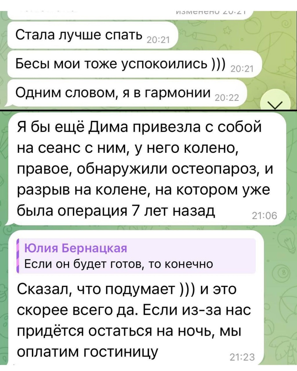 Выше отзыв клиентки после работы со мной, она чувствует себя всё лучше с каждым разом и хочет теперь привести супруга
