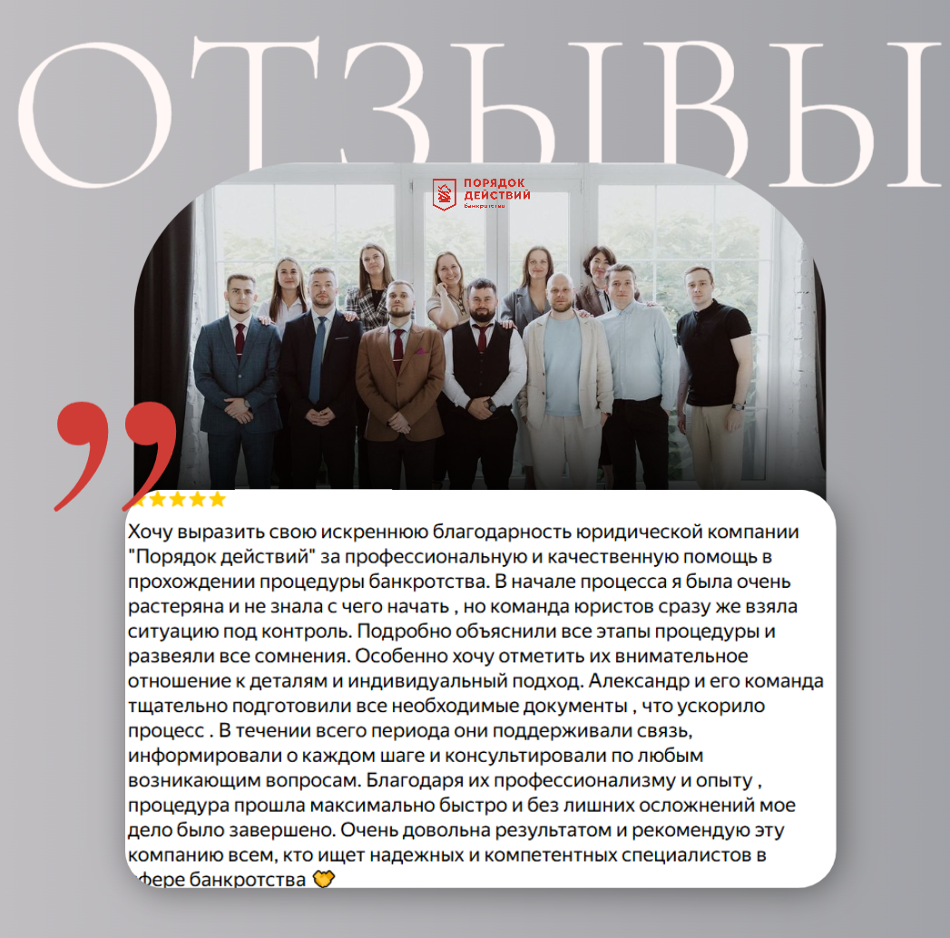 В этом посте мы разберем реальную историю нашей клиентки Анны (имя изменено по этическим соображениям). Её отзыв — лучшая иллюстрация нашего подхода: когда клиент приходит в состоянии полной неопределенности, а мы возвращаем ему контроль и результат. 🔸Анна обратилась к нам, будучи, по её собственным словам, «очень растерянной» и не знающей, с чего начать. Это типичная и абсолютно нормальная ситуация. Напряжение от долгов парализует, и главная задача на первом этапе — снять этот стресс и дать ясность. ➡️ Первым делом мы детально разобрали её финансовое положение, объяснили все этапы процедуры простым языком и составили пошаговый план. ➡️ Детальная подготовка документов. Команда под руководством Александра взяла на себя всю бумажную работу. Мы тщательно подготовили все необходимые документы, уделяя внимание каждой детали. ➡️ На протяжении всей процедуры мы поддерживали с Анной регулярную связь. Для нас было важно, чтобы она не чувствовала себя «в неведении» и в любой момент могла получи